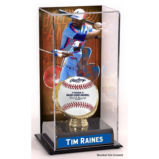 Vitrine d'exposition sublimée du Temple de la renommée des Expos de Montréal de Tim Raines avec image