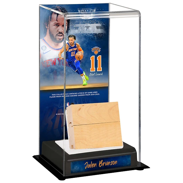 Vitrine haute sublimée Jalen Brunson New York Knicks avec image et terrain utilisé lors des matchs du Madison Square Garden de 2014 à 2023