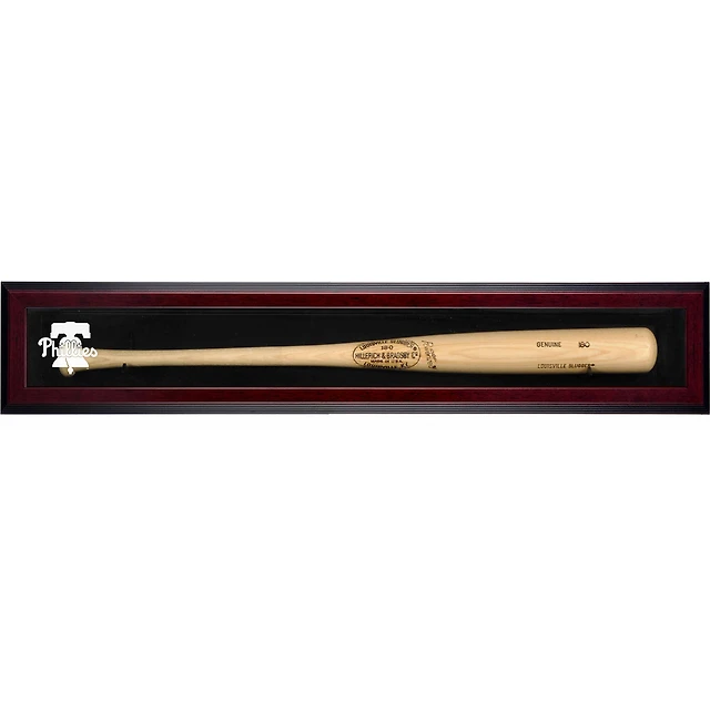 Vitrine murale encadrée en acajou avec logo des Phillies de Philadelphie 2019 pour une seule batte