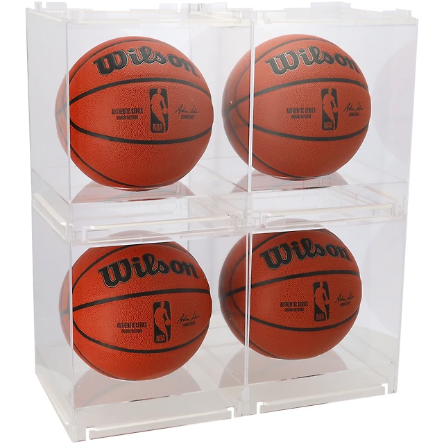 Vitrines de présentation empilables et pliables en acrylique pour quatre ballons de basket