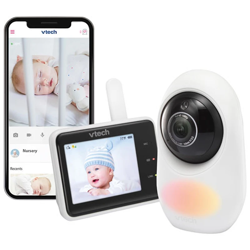 Having an eye on your little one is easy with this VTech 2.8" Wi-Fi HD video baby monitor. Its super-slim color LCD screen and high-resolution video quality let you clearly watch over your baby. Automatic infrared Night vision allows you to monitor your baby even in extremely low-light conditions. You can use sound and light setting to soothe your baby for better sleep.