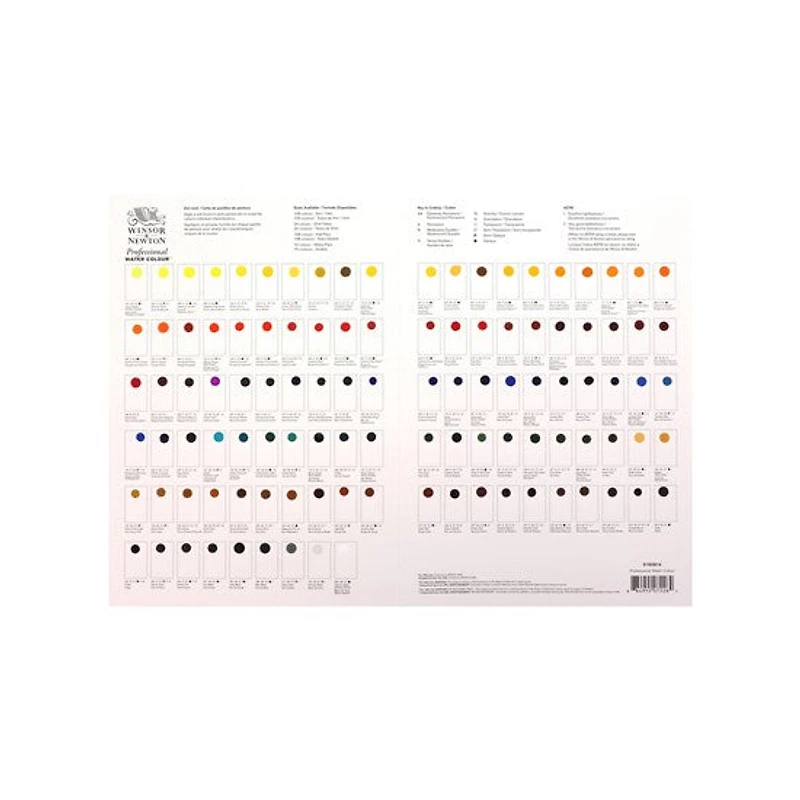 This dot card allows you to sample 109 of Winsor & Newton’s professional watercolors without having to buy a full tube. This sampler includes a paintable dot and specific characteristics of each color in terms of its permanence, opacity, granulation and other properties. Simply apply a wet paintbrush to each painted dot to reveal the color. Winsor & Newton makes artist watercolours with the highest possible pigmentation. Their colors are intense and resistant to facing or yellowing. Try them for yourself! Dimensions of the chart: 34.3 x 23 x 0.5 cm (13.5 x 9.1 x 0.2 inches).