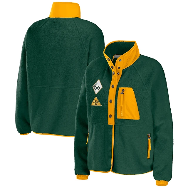 WEAR by Erin Andrews Green Veste polaire raglan à boutons-pression pour Bay Packers femmes