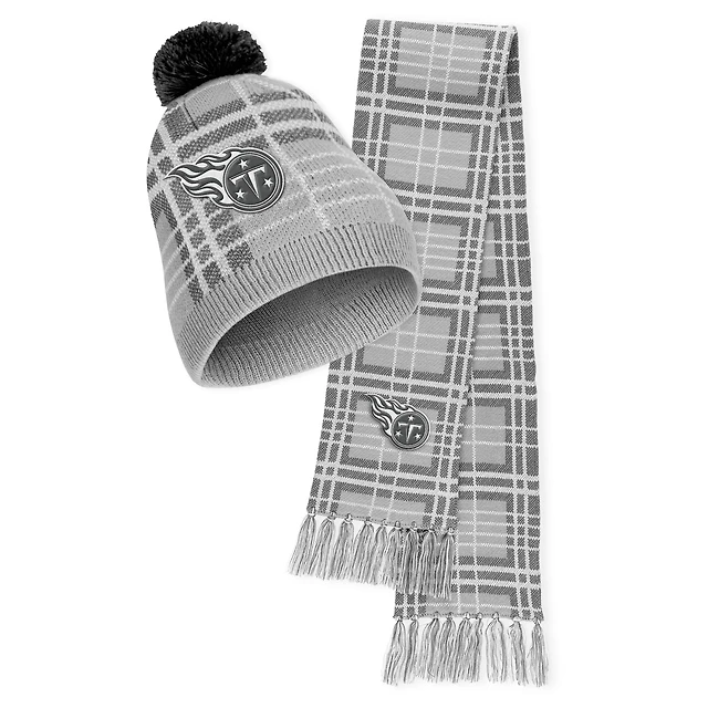 WEAR by Erin Andrews Tennessee Titans Bonnet en tricot à carreaux avec pompon et écharpe pour femme