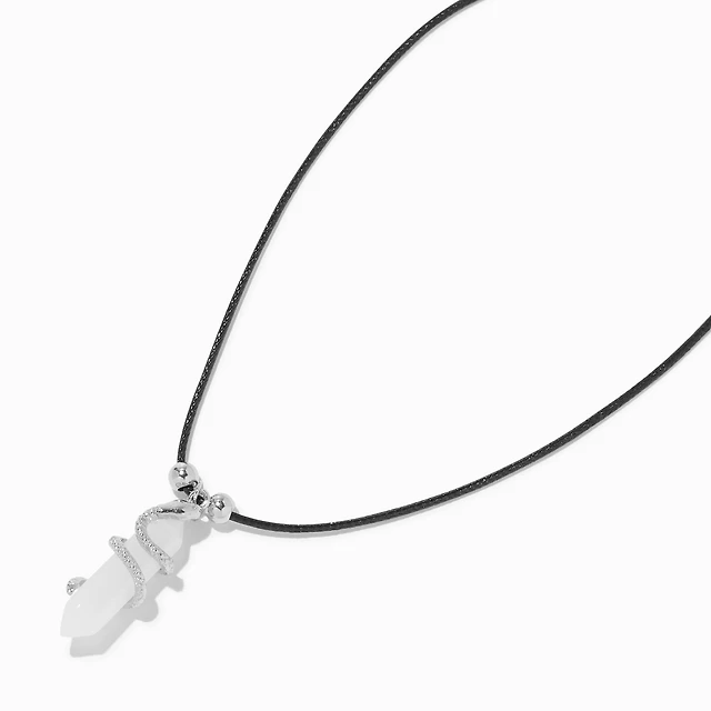 White Glow In The Dark Mystical Gem with Snake Pendant Black Cord Necklace