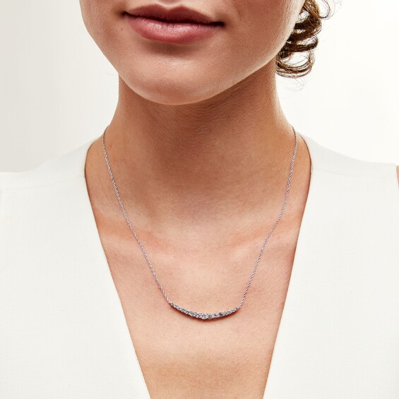 Theyâll love the easy sophistication of this white lab-created sapphire curved bar necklace.
