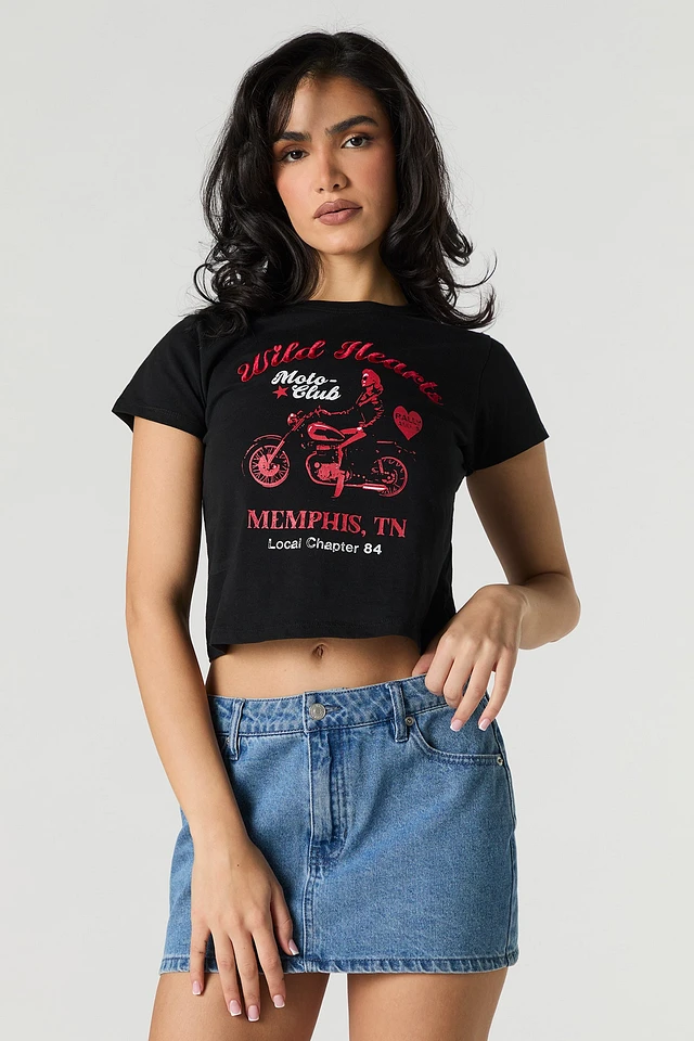 Wild Hearts Embroidered Graphic Cropped T-Shirt