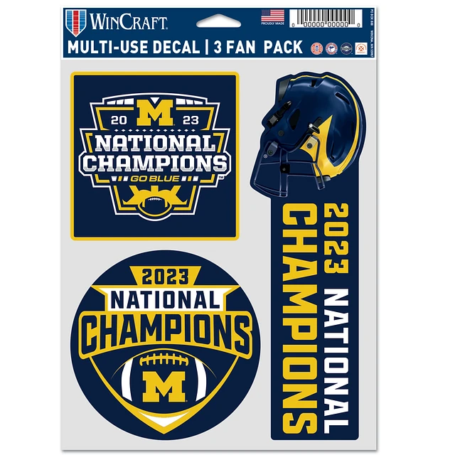 WinCraft Michigan Wolverines College Football Playoff 2023 National Champions 5.5'' x 7.75'' Three-Pack Fan Decal Set