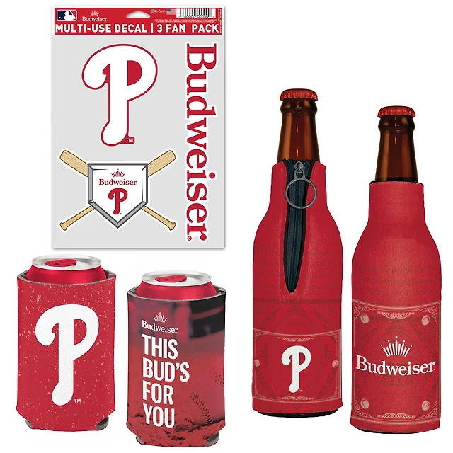 WinCraft Philadelphia Phillies MLB x Budweiser Refroidisseur de canettes, refroidisseur de bouteilles et pack d'autocollants