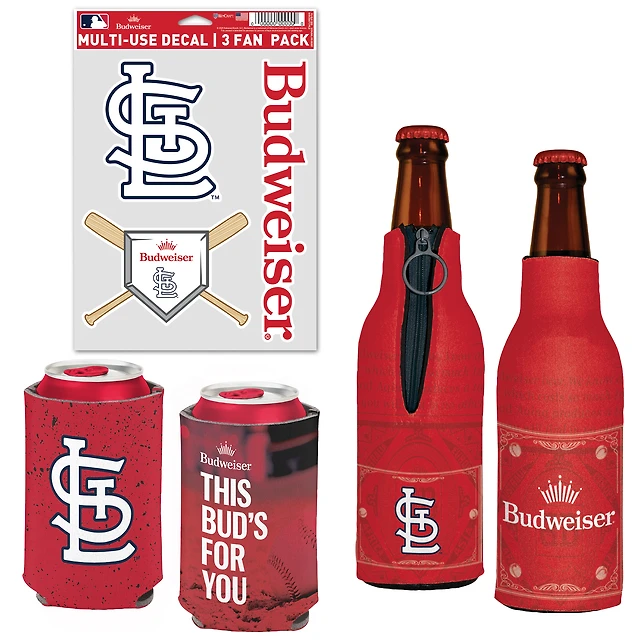 WinCraft St. Louis Cardinals MLB x Budweiser Refroidisseur de canettes, refroidisseur de bouteilles et pack d'autocollants