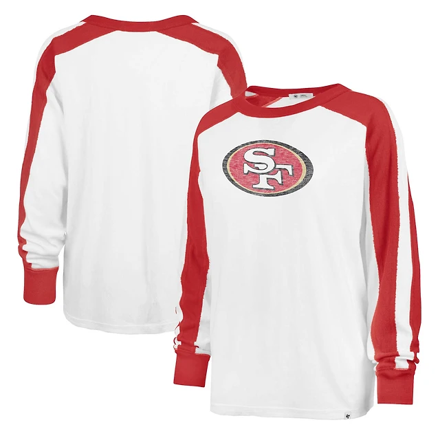 Women's '47 Cream San Francisco 49ers Double Header Curve Toni Long Sleeve T-Shirt