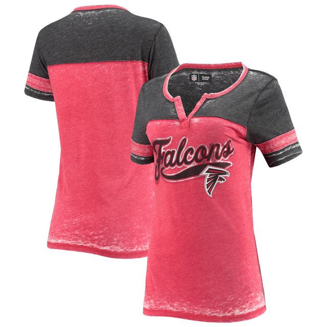 Women's 5th & Ocean by New Era Red Atlanta Falcons Burnout Wash Stripe V-Neck T-Shirt
