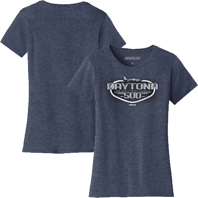 Women's Checkered Flag Sports Heather Navy Daytona International Speedway 2025 500 Graphic T-Shirt