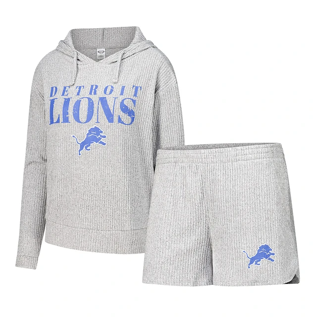 Women's Concepts Sport Gray Detroit Lions Juniper Long Sleeve Hoodie T-Shirt & Shorts Set