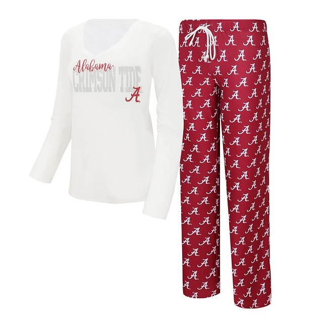 Women's Concepts Sport White/Crimson Alabama Crimson Tide Long Sleeve V-Neck T-Shirt & Gauge Pants Sleep Set