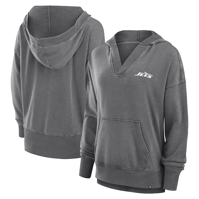 Women's Fanatics Heather Charcoal New York Jets Initiative Snow Wash French Terry V-Neck Pullover Hoodie