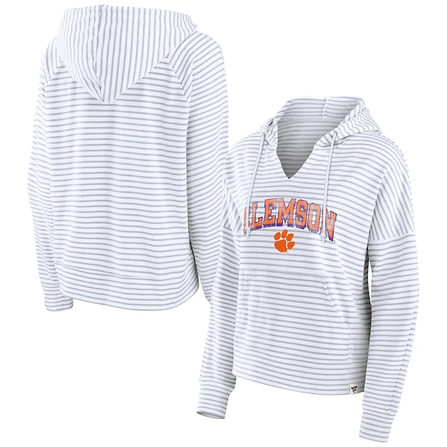 Women's Fanatics White Clemson Tigers Striped Notch Neck Pullover Hoodie