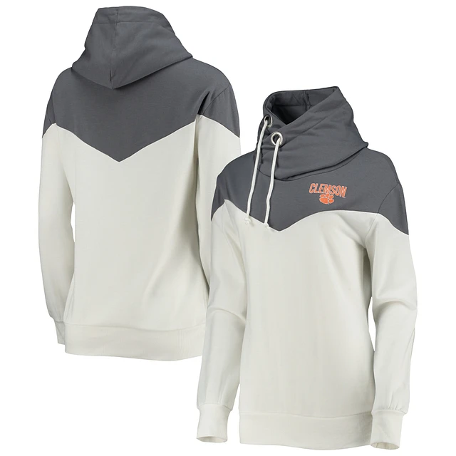 Women's Gameday Couture White/Gray Clemson Tigers Old School Arrow Blocked Cowl Neck Tri-Blend Pullover Hoodie