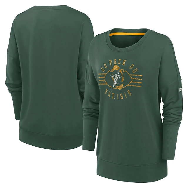 Women's Nike Green Bay Packers Rewind Playback Icon Performance Pullover Sweatshirt