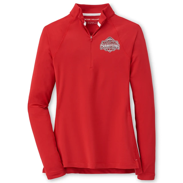 Women's Peter Millar Scarlet Ohio State Buckeyes College Football Playoff 2024 National Champions Perth Raglan Sleeve Quarter-Zip Top