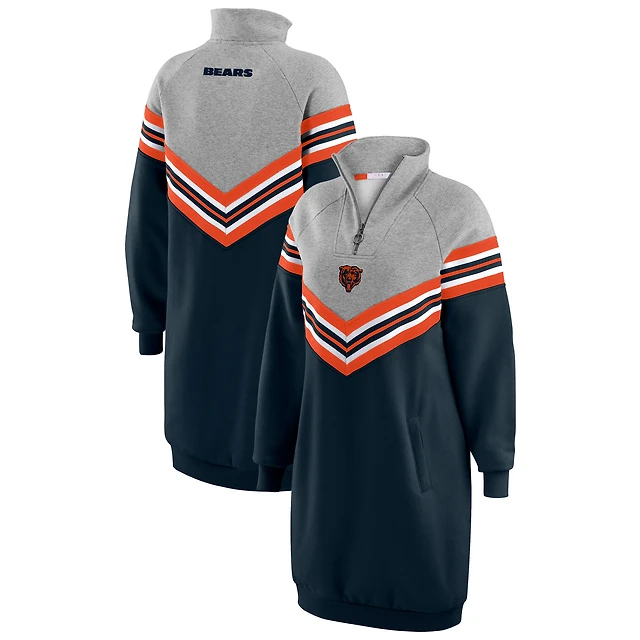 Women's WEAR by Erin Andrews Navy/Heather Gray Chicago Bears Chevron Stripe Dress