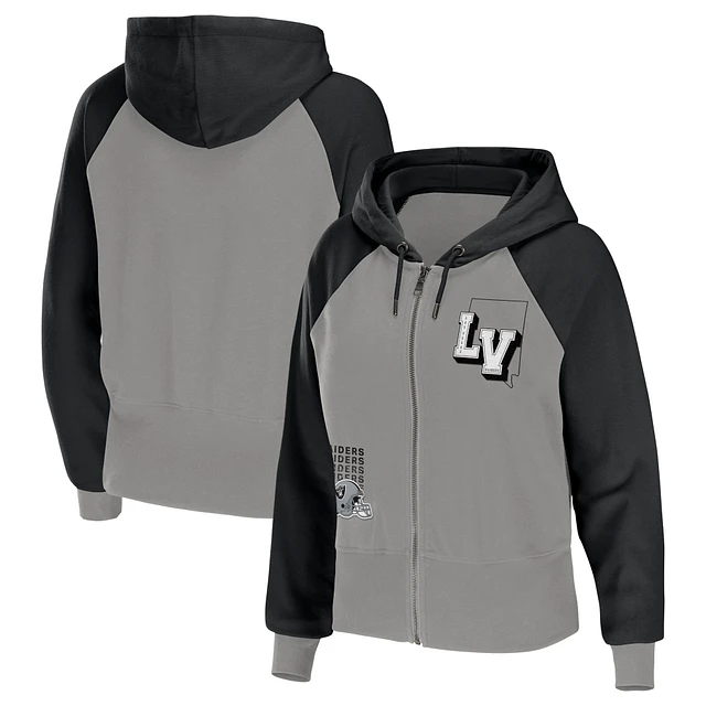 Women's WEAR by Erin Andrews Silver Las Vegas Raiders Colorblock Lightweight Full-Zip Hoodie