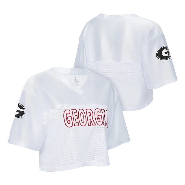 Women's ZooZatz White Georgia Bulldogs Mesh Cropped V-Neck T-Shirt