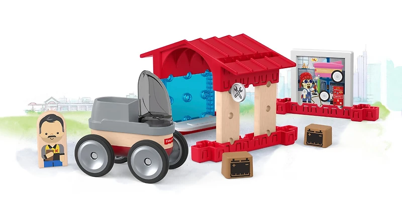 With the Wonder Makers Garage building and track set, kids can design and build their own mechanic's garage, where they can tune-up the truck and peek in the workshop before hitting the road on their own exciting adventures! Preschoolers can use the 15+ reconfigurable play pieces to build different garages, using the same pieces to create new layouts. With so many combinations to explore, kids can create a different garage every day -- there's no wrong way to play with this unique building set! Where development comes into play -- Creativity & Imagination: Kids can let their imaginations run wild as they use creative thinking to design their own garage and tell stories with the characters. Engineering & Building: As preschoolers build and re-build their garage, mixing and matching the play pieces to create different configurations, they'll practice their designing and building skills!