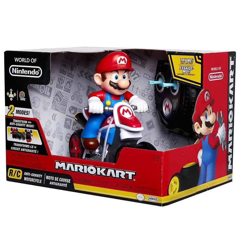 With up to a 100' range this RC can go the distance! Race in standard mode or flip into anti-gravity mode Perform drifts and tricks at the press of a button. World of Nintendo Mario Kart Anti-Gravity Motorcycle R/C Vehicle