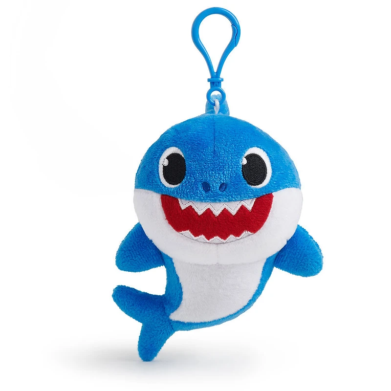 Your favorite shark family now in adorable plush clips that attach to your backpack, stroller and more! Collect all 3 characters: Baby Shark, Mommy Shark, Daddy Shark. These famous sharks are travel size so bring them with you, just clip them and go!