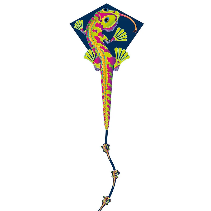 X Kites Dlx Diamond Gecko kite by BrainStormProducts is a diamond shaped nylon kite with fringed trailing edges. -Easy to Assemble -Fun to Fly -Lightweight Nylon Sail -Durable Fiberglass Airframe -Includes Flying Line, Handle and FancyTail