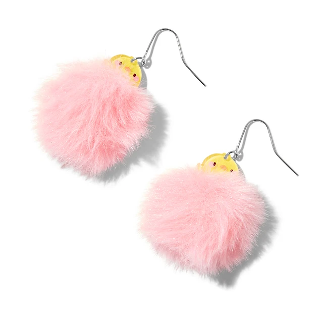 Yellow Chick Pink Pom Pom 1.5" Drop Earrings