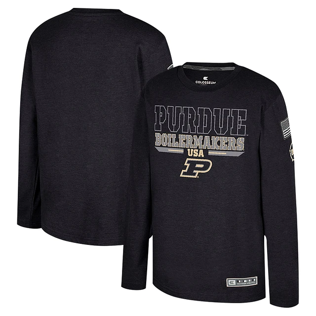 Youth Colosseum Heather Black Purdue Boilermakers OHT Military Appreciation Oorah Long Sleeve T-Shirt