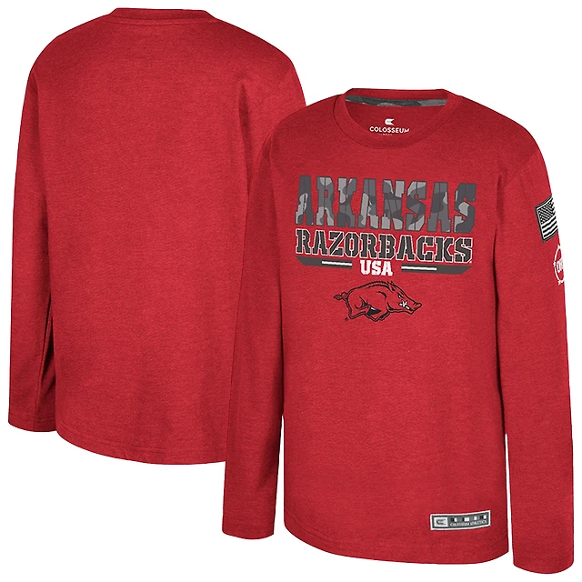 Youth Colosseum Heather Cardinal Arkansas Razorbacks OHT Military Appreciation Oorah Long Sleeve T-Shirt