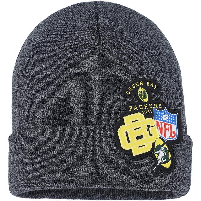 Youth Mitchell & Ness Black Green Bay Packers XL Logo Cuffed Knit Hat