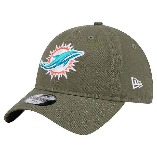 Youth New Era Olive Miami Dolphins Main 9TWENTY Adjustable Hat