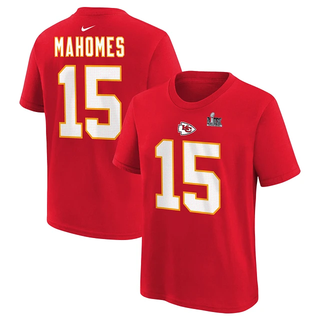 Youth Nike Patrick Mahomes Red Kansas City Chiefs Super Bowl LIX Name & Number T-Shirt
