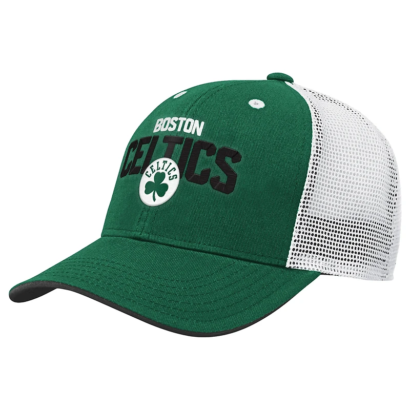 Help your favorite youngster show their Boston Celtics pride with this Core Lockup Adjustable Hat from Outerstuff. This hat proudly displays the Boston Celtics logo with raised embroidery, making it a standout piece for any young fan. The contrast-color underbill adds a touch of style, while the mesh mid and rear panels ensure breathability, keeping them cool and comfortable whether they're at the game or playing outside.