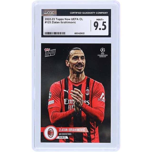 Zlatan Ibrahimovic AC Milan 2022-23 Topps maintenant UEFA Une icône retire la carte authentifiée 9.5 CGC n°125