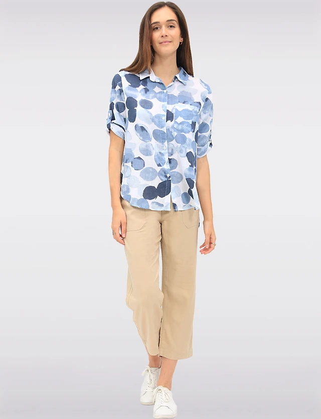 Cotton Button-Up Blouse with Shirt Collar Cuffed Sleeves & Chest Pocket by Dash