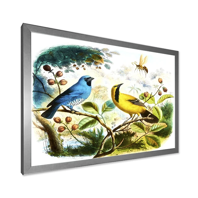 Blue Palm Leaves Abstract Tropical Branches Wall Art