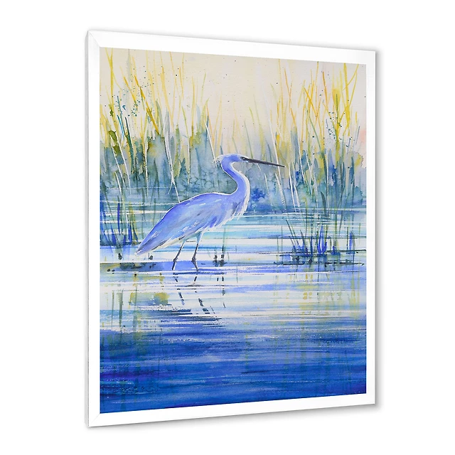 Blue Heron on The Lake Shore At Sunset Canvas Wall Art Print