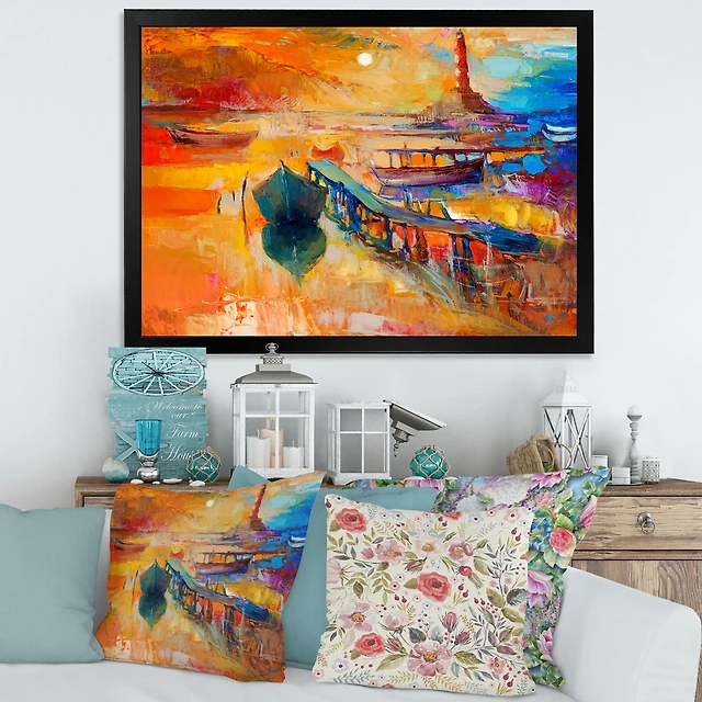 Boats Resting on The Water Near Coastal Town III Canvas Wall Art Print