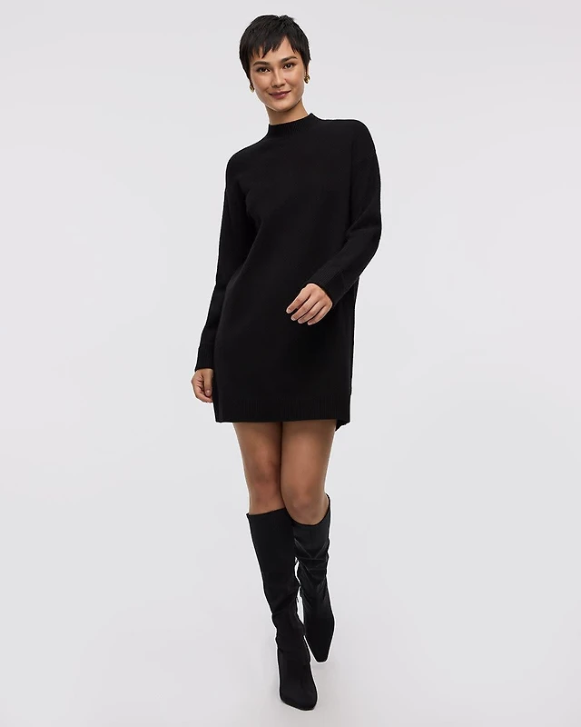 Striped Extended-Sleeve Crew-Neck Midi Dress