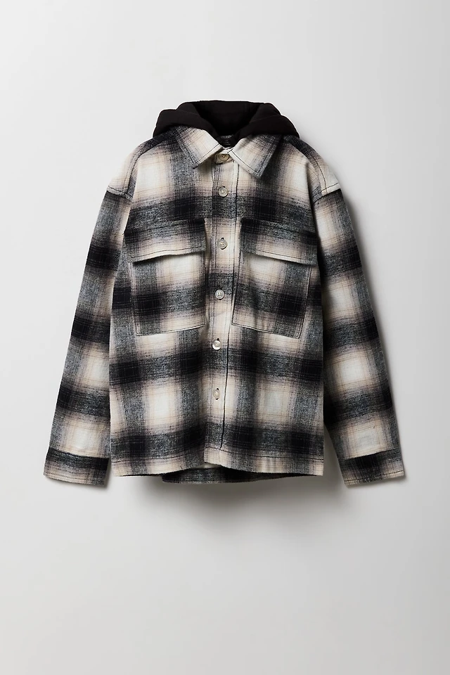 Boys Plaid Flannel Boxy Shacket
