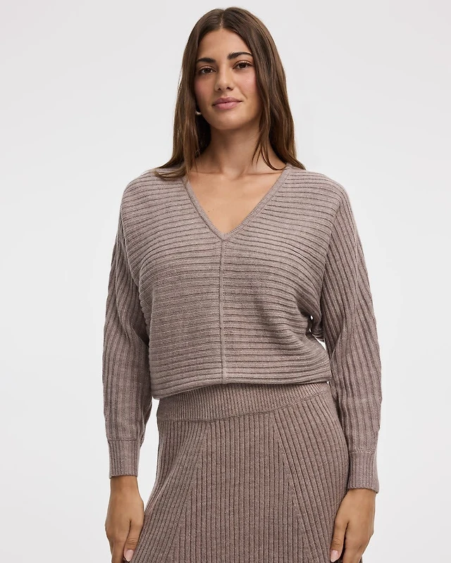 Long-Balloon-Sleeve Crew-Neck Cardigan
