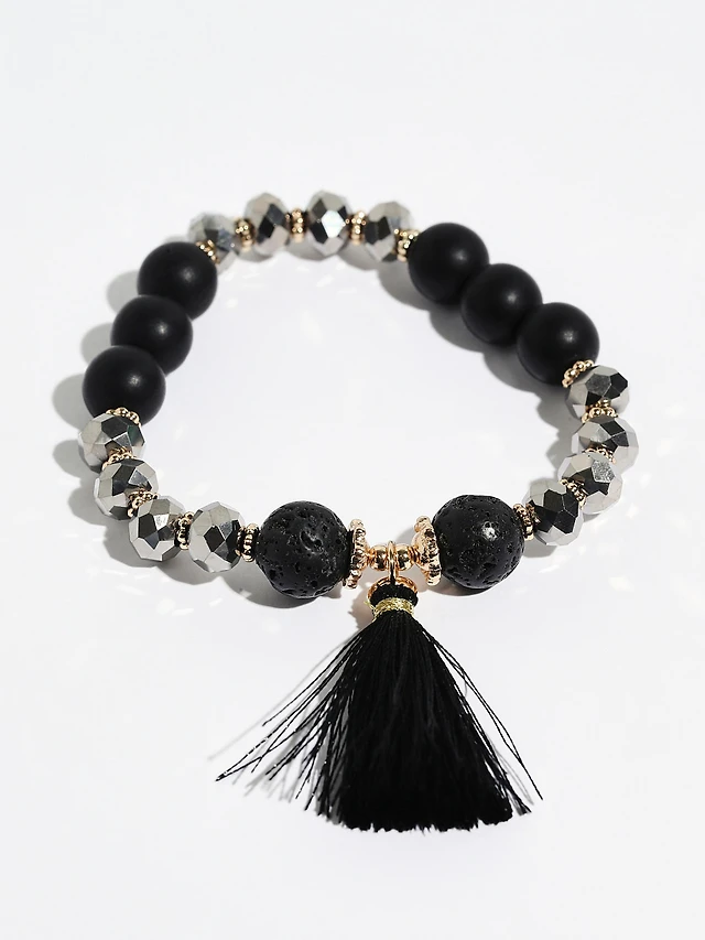 Black Tassel Stretch Bracelet