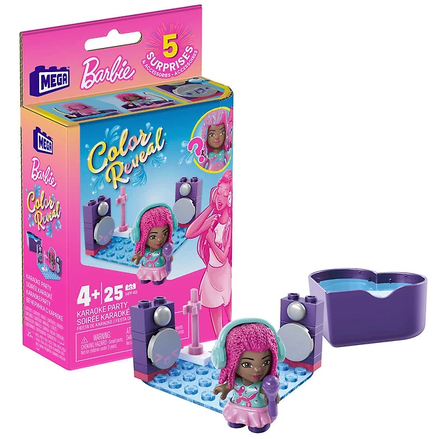Mega Barbie Color Reveal Karaoke Party Building Set with Micro-Doll & Accessories (25 pcs)