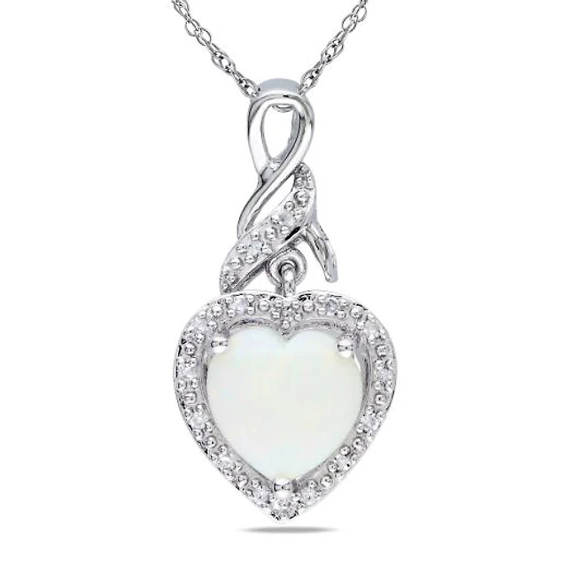 Julianna B Sterling Silver Opal & Diamond Heart Twist Pendant with Chain