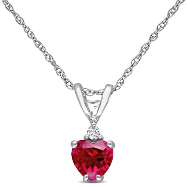 Julianna B 10k White Gold Created Ruby & 0.02CTW Diamond Pendant